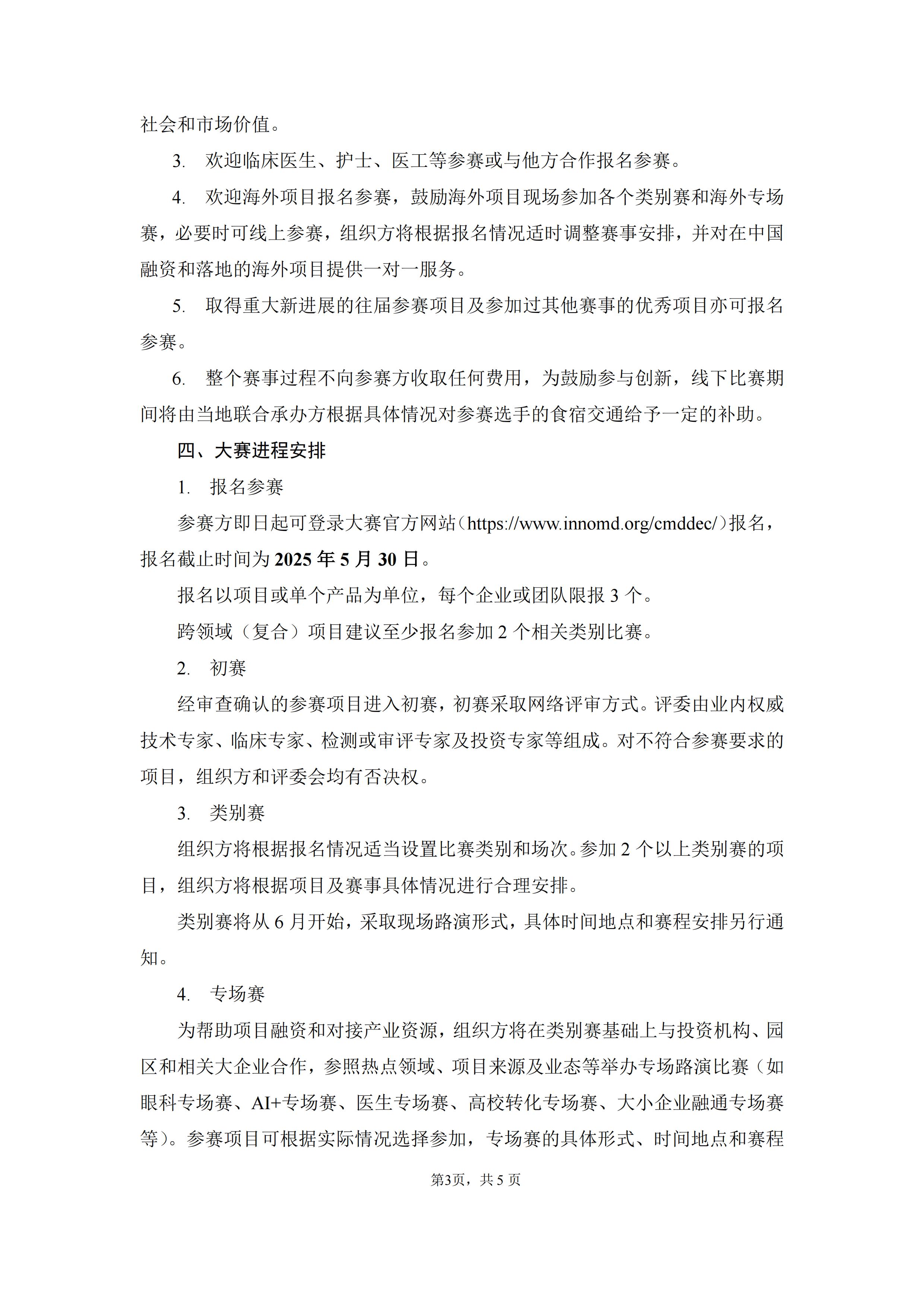 参赛方即日起可登录大赛官方网站(医疗器械创新网网://santime-bigdata.com/cmddec/)报名,报名截止时间为2025年5月30日。
